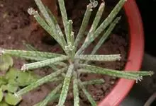 棒叶落地生根是景天科、落地生根属植物。茎直立、粉褐色。叶圆棒形,上表面有沟、粉色,有红褐斑。叶片交互对生,交叉排列成十字形。叶端锯齿上长有很小的幼株、落地后即可生根成活。原产非洲马达加斯加。…全部>>