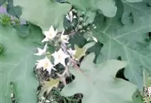 大花茄,别名木番茄,原产南美洲的玻利维亚至巴西。常绿大灌木或小乔木,株高3至5米,茎直立,小枝及叶柄具刚毛与皮刺,叶互生,叶片大、通常羽状半裂,叶面具刚毛状单毛。花腋生,花冠粉红色,…全部>>