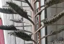 伽蓝菜是景天科伽蓝菜属植物。多年生草本,高20-100厘米。叶对生,中部叶羽状深裂,全长8-15厘米,裂片线形或线状披针形。聚伞花序排列圆锥状,长10-30厘米;苞片线形。花期3月。…全部>>