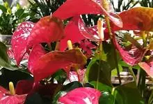 花烛,别名红鹅掌、红掌、安祖花等,为天南星科花烛属的一种多年生草本植物。其茎矮;叶互生,叶片革质,有光泽,阔心形、圆心形,先端钝或渐尖,基部深心形;肉穗花序有细长花序梗,佛焰苞深红色或橘红色,…全部>>