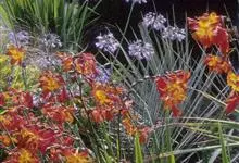 雄黄兰是鸢尾科雄黄兰属多年生草本植物。雄黄兰具扁球径,叶多基生,剑形;花茎由多花给成疏散的穗状花序,花冠漏斗状,深橙红色;蒴果。 花期7-8月,果期8-10月 。雄黄兰因橘红色的花与雄黄颜色相似而得名。…全部>>