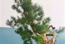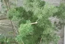 蓬莱松是天门冬科、天门冬属多年生丛生草本植物。宿存,圆柱形肉质根,纵截面为绿色和表面灰色。植株高可达3米。茎呈圆柱形或近四边形,底部木质化,具有灰色或灰褐色。幼嫩的茎在每个节上都被紫绿色鳞片包,…全部>>