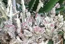 彩春峰是大戟科大戟属肉质植物,彩春峰的肉质茎依品种的不同有暗红色、乳白、淡黄及镶边、斑纹等复色。彩春峰的性状很不稳定,栽培中经常会发生色彩的变异,如暗紫红色肉质茎会长出白色黄色斑块等。…全部>>