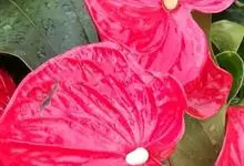 花烛,别名红鹅掌、红掌、安祖花等,为天南星科花烛属的一种多年生草本植物。其茎矮;叶互生,叶片革质,有光泽,阔心形、圆心形,先端钝或渐尖,基部深心形;肉穗花序有细长花序梗,佛焰苞深红色或橘红色,…全部>>