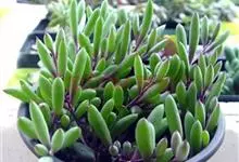 紫玄月中文正式名黄花新月,属于菊科厚敦菊属菊属的被子植物。紫玄月又称紫弦月、紫佛珠、紫葡萄、玉翠楼等,它的原产地现在还没有官方明确记载。多肉植物的吊兰品种之一,叶片非常奇特,常被误认为千里光属。全部>>