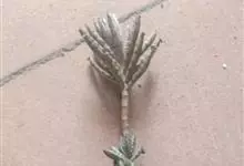 棒叶落地生根是景天科、落地生根属植物。茎直立、粉褐色。叶圆棒形,上表面有沟、粉色,有红褐斑。叶片交互对生,交叉排列成十字形。叶端锯齿上长有很小的幼株、落地后即可生根成活。原产非洲马达加斯加。…全部>>