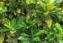 洒金桃叶珊瑚,常绿灌木,原产中国台湾及日本,属于藤本类。 不甚耐寒。小枝粗圆。叶对生,叶片椭圆状卵圆形至长椭圆形,油绿,光泽,散生大小不等的黄色或淡黄色的斑点,先端尖,边缘疏生锯齿。属桃叶珊瑚属、…全部>>