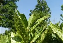 花叶青木是丝缨花科,桃叶珊瑚属青木的变种,常绿灌木,植株高可达1.5米;小枝对生。叶革质,叶片卵状椭圆形或长圆状椭圆形,叶面光亮,具黄色斑纹,叶柄腹部具沟,无毛。…全部>>