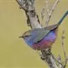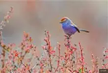 凤头雀莺:小型鸟类。体长9-10厘米,雄鸟呈毛茸茸的紫色和绛紫色,顶冠淡紫灰色,额及凤头白色,尾全蓝。雌鸟喉及上胸白,至臀部渐变成淡紫色,耳羽灰,…全部>>