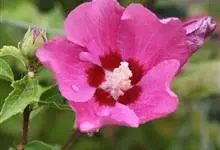 木槿,锦葵科木槿属落叶灌木,高3-4米,小枝密被黄色星状绒毛。叶菱形至三角状卵形,具深浅不同的3裂或不裂,先端钝,基部楔形,边缘具不整齐齿缺,下面沿叶脉微被毛或近无毛;托叶线形。花单生于枝端叶腋间,…全部>>