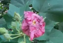 木芙蓉,锦葵科木槿属落叶灌木或小乔木。小枝上有细绒毛;叶片为卵状心形,托叶为披针形,常早落;花单生,花萼为钟形,花冠初为白色或淡红色,后逐渐变为深红色;果实为扁球形,有淡黄色的毛附着。花期8到10月。…全部>>