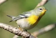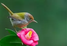 普通缝叶莺,是雀形目鹅科莺亚科缝叶莺属一种。体长10-14厘米,体重7-10克,雄鸟前额棕红,头顶至枕棕橄榄褐,上体橄榄绿染黄,飞羽及尾羽暗褐;繁殖期雄鸟的中央尾羽特形延长,下体淡皮黄白色。…全部>>