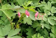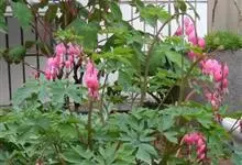 荷包牡丹 Fukuhara),是罂粟科荷包牡丹属的多年生草本植物,株高30-60厘米,具肉质根状茎;茎直立呈圆柱形;叶二回三出全裂,状似牡丹叶;总状花序顶生,基部为心形,花瓣紫红色至粉红色,稀白色,…全部>>