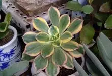 红缘莲花掌属蔷薇目、景天科植物,原产大西洋的加那利群岛。质厚,蓝绿色,被白霜,叶缘红褐色。聚伞花序,花浅黄色,有时带红晕。叶形叶色较美,有一定的观赏价值,多盆栽用于点缀室内;可放置于电视、电脑旁,…全部>>