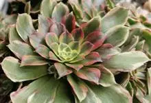 红缘莲花掌属蔷薇目、景天科植物,原产大西洋的加那利群岛。质厚,蓝绿色,被白霜,叶缘红褐色。聚伞花序,花浅黄色,有时带红晕。叶形叶色较美,有一定的观赏价值,多盆栽用于点缀室内;可放置于电视、电脑旁,…全部>>