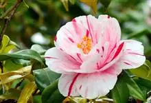 滇山茶:灌木至小乔木,有时高达15米,嫩枝无毛。叶阔椭圆形,上面干后深绿色,发亮,下面深褐色,无毛,侧脉6-7对,边缘有细锯齿。花顶生,红色,直径10厘米,无柄;苞片及萼片10-11片,花瓣红色,…全部>>