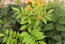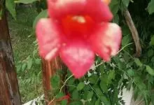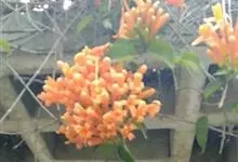 凌霄 Schum.),别名上树龙、五爪龙、九龙下海等,为紫葳科凌霄属的攀援藤本植物。其茎木质,以气生根攀附于它物之上。叶对生,为奇数羽状复叶;小叶卵形至卵状披针形,边缘有粗锯齿;顶生疏散的短圆锥花序,…全部>>