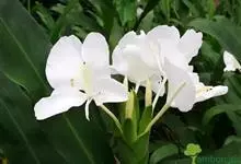 姜花又名野姜花。是姜科姜花属的多年生草本植物,茎高1-2米;叶片长圆状披针形或披针形,叶面光滑,叶背被短柔毛;穗状花序顶生,椭圆形,花芬芳,白色;蒴果卵状三棱形,微黄绿色;种子鲜红色,具橘红色的假种皮。…全部>>