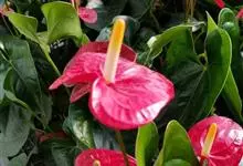 花烛,别名红鹅掌、红掌、安祖花等,为天南星科花烛属的一种多年生草本植物。其茎矮;叶互生,叶片革质,有光泽,阔心形、圆心形,先端钝或渐尖,基部深心形;肉穗花序有细长花序梗,佛焰苞深红色或橘红色,…全部>>