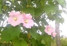 木芙蓉,锦葵科木槿属落叶灌木或小乔木。小枝上有细绒毛;叶片为卵状心形,托叶为披针形,常早落;花单生,花萼为钟形,花冠初为白色或淡红色,后逐渐变为深红色;果实为扁球形,有淡黄色的毛附着。花期8到10月。…全部>>