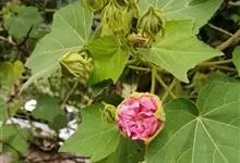 木芙蓉,锦葵科木槿属落叶灌木或小乔木。小枝上有细绒毛;叶片为卵状心形,托叶为披针形,常早落;花单生,花萼为钟形,花冠初为白色或淡红色,后逐渐变为深红色;果实为扁球形,有淡黄色的毛附着。花期8到10月。…全部>>