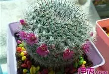 仙人掌科乳突球属原产墨西哥,通常单生,茎圆桶形,径粗9-10cm,高25-30cm,深绿色。棱13-21,放射刺20-30,中刺7-15,长2cm,红褐色。花色紫红。喜温暖干燥和阳光充足环境。较耐寒,…全部>>