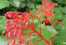 赪桐 Sweet)是唇形科、大青属灌木,高1-4米,叶片圆心形,顶端尖或渐尖,基部心形,边缘有疏短尖齿,表面疏生伏毛,二歧聚伞花序组成顶生,大而开展的圆锥花序,花序的最后侧枝呈总状花序,花萼红色,…全部>>