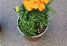 万寿菊是菊科万寿菊属一年生草本植物,别名孔雀菊、缎子花、臭菊花、西番菊、红黄草、小万寿菊、臭芙蓉、孔雀草。万寿菊茎近基部分枝。叶羽状分裂,长5-10厘米,宽4-8厘米,裂片长椭圆形或披针形,具锐齿,…全部>>