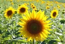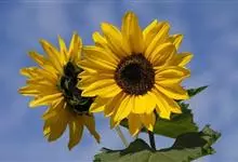 向日葵:是桔梗目、菊科、向日葵属的植物。因花序随太阳转动而得名。是一年生高大草本植物。茎粗壮,高1-3米,不分枝或有时上部分枝,被白色粗硬毛。叶互生,卵状心形或卵形,顶端急尖或渐尖,基生3出脉,…全部>>