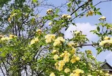 黄木香花 Rehd.)是蔷薇科、蔷薇属植物,为木香花的变型品种,攀缘小灌木,高可达6米。小叶3-5枚,稀7枚,小叶片椭圆形或长圆状披针形,先端急尖或稍钝,基部近圆形或宽楔形,边缘有紧贴细锯齿。花小型,…全部>>