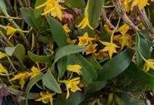 球花石斛,是兰科石斛属的多年生附生草本。茎直立或斜立,圆柱形,粗壮,基部收狭为细圆柱形,不分枝,具数节;叶互生于茎的上端,革质,长圆形或长圆状披针形;总状花序侧生于带有叶的老茎上端,下垂,花密生,黄色,…全部>>