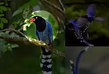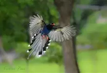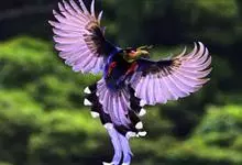台湾蓝鹊:体长64至65厘米,翼展18至21厘米,尾长约40厘米,尾羽长占了总体长的三分之二。头、脸、颈、喉、胸都是黑色,黄色的眼珠包围黑色的瞳孔,鲜红色的鸟喙、双脚,…全部>>