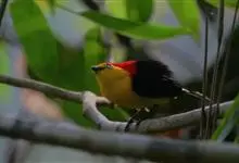 银耳相思鸟小型鸟类,体长14~18厘米。头顶黑色,耳羽银灰色,前额橙黄色;外侧飞羽橙黄色,基部朱红色,极为鲜艳、醒目。尾圆形,尾上、尾下覆羽朱红色,尾暗灰褐色,外侧尾羽橙黄色,其余上体橄榄绿或橄榄黄色。…全部>>