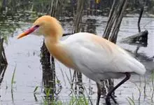 牛背鹭:体较肥胖,喙和颈较短粗。夏羽大都白色;头和颈橙黄色,前颈基部和背中央具羽枝分散成发状的橙黄色长形饰羽;前颈饰羽长达胸部,背部饰羽向后长达尾部,尾和其余体羽白色。冬羽通体全白色,个别头顶缀有黄色,…全部>>