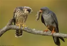 燕隼:是隼科、隼属的鸟类。体长约36厘米,体重140-340克。体形比猎隼、游隼等都小,为小型猛禽,雌鸟比雄鸟稍大;头部和颈后主要为灰黑色,颈后有一乳白色领斑;上体其余部分羽毛灰色,尾部稍淡,…全部>>