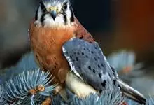 红隼:是隼科、隼属的小型猛禽之一。体重173-335克,体长305-360毫米。翅狭长而尖,尾亦较长,外形和共同爪隼非常相似。雄鸟头蓝灰色,背和翅上覆羽砖红色,具三角形黑斑;腰、尾上覆羽和尾羽蓝灰色,…全部>>