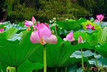 荷花:属山龙眼目、莲科,是莲属中2个物种“莲花”和“黄莲花”及众多人工培育品种的通称。是多年生水生草本花卉。地下茎长而肥厚,有长节,叶盾圆形。花期6至9月,单生于花梗顶端,花瓣多数,嵌生在花托穴内,…全部>>