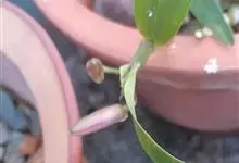 大苞鞘石斛:茎斜立或下垂,肉质状肥厚,圆柱形不分枝,具多节;节间多少肿胀呈棒状。叶薄革质,二列,狭长圆形。总状花序从落了叶的老茎中部以上部分发出,具1-3朵花;花大,开展,白色带紫色先端;花瓣宽长圆…全部>>