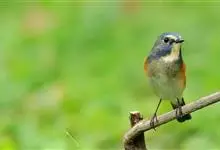 红胁蓝尾鸲俗名:蓝点冈子、蓝尾巴根子、蓝尾杰、蓝尾欧鸲。体型略小而喉白的鸲。特征为橘黄色两胁与白色腹部及臀成对比。雄鸟上体蓝色,眉纹白;亚成鸟及雌鸟褐色,尾蓝。…全部>>