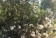 白花夹竹桃是夹竹桃科、夹竹桃属植物夹竹桃的栽培品种。常绿直立大灌木,枝条灰绿色;嫩枝条具稜,被微毛,老时毛脱落。叶3-4枚轮生,下枝为对生,叶面深绿,叶背浅绿色;侧脉纤细平行与中脉成直角;叶柄扁平,…全部>>