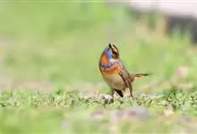 蓝点颏亦称“蓝喉歌鸲”,通称蓝靛颏儿。身体大小和麻雀相似,体长12-13厘米,体重17-18克。头部、上体主要为土褐色。眉纹白色。尾羽黑褐色,基部栗红色。颏部、喉部辉蓝色,下面有黑色横纹。下体白色。…全部>>