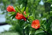 石榴花是石榴属植物的统称。石榴花有顶花、腋花之分,为有限伞房花序,花序的中心花首先发育,侧位花后发育,一个花序有1-9个花蕾不等。石榴花花萼红色或淡黄色,裂片略外展,卵状三角形,外面近顶端有绿色腺体,…全部>>