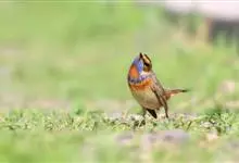 蓝点颏亦称“蓝喉歌鸲”,通称蓝靛颏儿。身体大小和麻雀相似,体长12-13厘米,体重17-18克。头部、上体主要为土褐色。眉纹白色。尾羽黑褐色,基部栗红色。颏部、喉部辉蓝色,下面有黑色横纹。下体白色。…全部>>