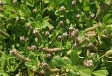 过江藤 Greene)是马鞭草科过江藤属的多年生草本植物,有木质宿根,多分枝,全体有紧贴丁字状短毛;叶近无柄,匙形、倒卵形至倒披针形,顶端钝或近圆形,基部狭楔形,中部以上的边缘有锐锯齿;穗状花序腋生,…全部>>