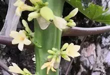 番木瓜,番木瓜科番木瓜属的常绿软木质小乔木,高达10米,具有乳汁;茎不分枝或有时于损伤处分枝;叶大且聚生于茎顶,近似盾形,叶柄中空;花单性或两性,有些品种雄株偶尔生两性花或雌花,…全部>>