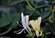忍冬,是忍冬科忍冬属半常绿缠绕藤本植物,别名又称鸳鸯藤、金银花。忍冬幼枝呈橘红褐色,常常覆盖粗糙的硬毛;叶片一般有披针形和卵形,边缘有粗糙的绒毛,上面深绿色,下面淡绿色;忍冬花苞片大,花瓣卵形或椭圆形,…全部>>