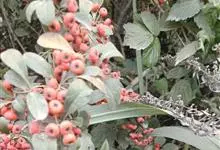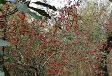 火棘 H. L. Li)是蔷薇科火棘属常绿灌木,老枝呈暗褐色;叶片呈倒卵形,边缘有钝锯齿,齿尖向内弯,两面皆无毛;叶柄短,无毛或嫩时有柔毛;花序是复伞房状,花瓣呈白色近圆形;果球近圆形,…全部>>