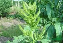 反枝苋是苋科苋属的一年生草本植物。株高达1米;茎密被柔毛;叶菱状卵形或椭圆状卵形,先端锐尖或尖凹,两面及边缘被柔毛,下面毛较密;穗状圆锥花序,顶生花穗较侧生者长;花被片长圆形或长圆状倒卵形,…全部>>