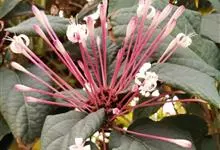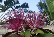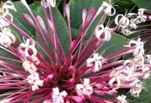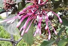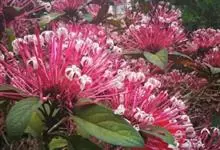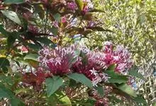 烟火树 Merr.)是唇形科、大青属常绿灌木或小乔木,株高可达4米。幼枝方形,墨绿色。叶对生,长椭圆形或披针形,先端尖,全缘或波状缘。纸质,叶背暗紫红色。聚伞状圆锥花序,顶生,小花多数,聚生成团,…全部>>