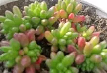 虹之玉是景天科景天属的多肉植物,多年生肉质草本植物。生长速度较快,叶片肉质,呈长椭圆形,约1厘米长,互生。花黄色,星形,秋冬季节或强光照下,叶片部分或全部转为鲜红色。生长适温10~28℃,…全部>>